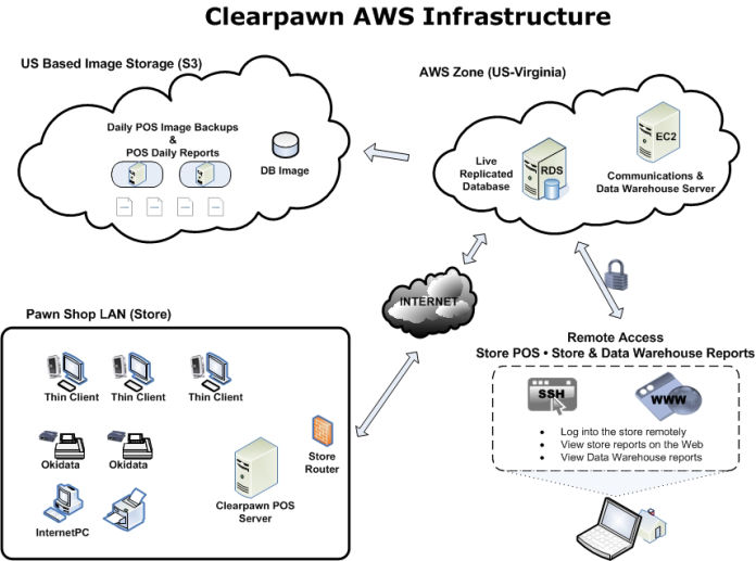 Cutting edge Pawn systems. Running on local servers for security, handling internet outages while using cloud systems for managers and customers.